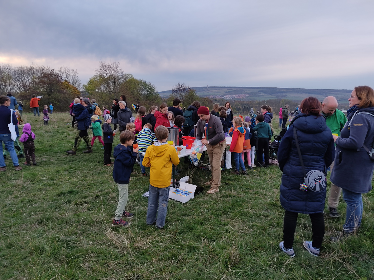 Am Donnerstag, 3.11.22, fand wieder ein Drachenfest statt und die Untergruppen ließen nach anfänglichen Windschwierigkeiten am Ende zahlreiche Drachen über dem Südhang des Kirschbachtals steigen und Gesichter strahlen. Ein Meer von Eltern, Kindern und LehrerInnen sowie ErzieherInnen bevölkerte bis in die Dunkelheit die große Wiese. Selbst für das leibliche Wohl sorgte ein Buffett. Seht hier einige Schnappschüsse.
