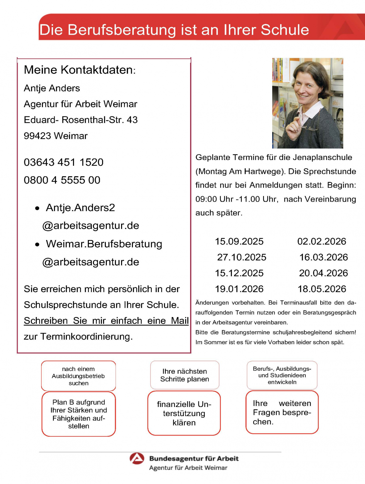 Bundesagentur für Arbeit, Fr. Anders Ansprechpartner Schule: K. Albrecht-Kunkel |